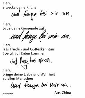 Christsein heißt: Ich bin ein schwacher Mensch. Aber ich nehme meinen Teil vom Kreuzweg des Glaubens unter die Füße. Ich helfe, wo ich kann und lasse mir helfen. Und die letzte Verantwortung lege ich mit allen Brüdern und Schwestern in Gottes Hand. Das wäre für mich ein klares Konzept. So würden wir mit Wort und Tat die Botschaft unter uns und vor den Menschen verkündigen: „Keinem von uns ist Gott fern!“ (Apg 17,27 übrigens der Monatsspruch für den Juli 2005).